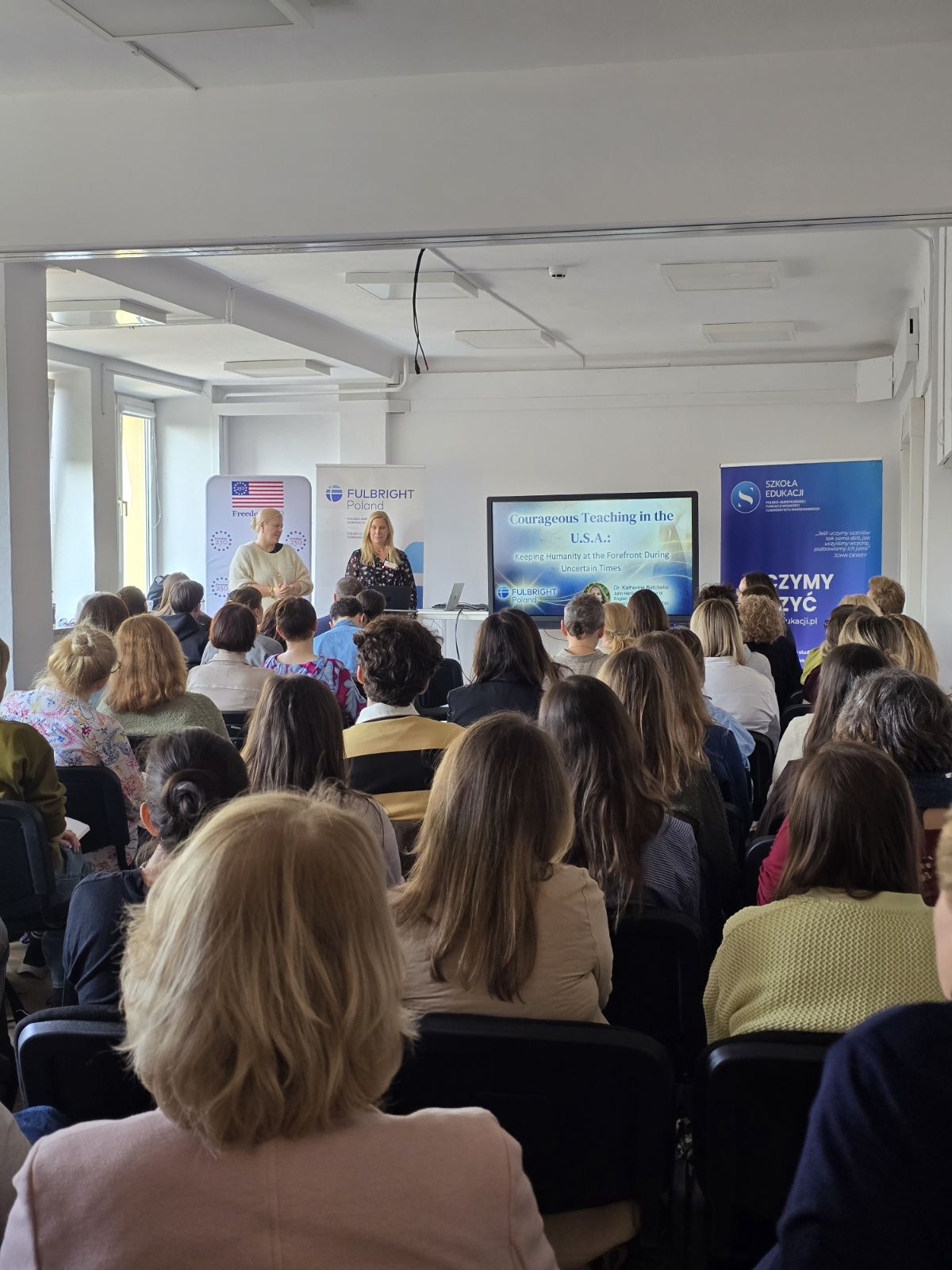 Kluczowym elementem projektu była wizyta ekspertek w ramach programu Fulbright Specialist – dr Katherine Batchelor oraz dr Kelli Rushek z Miami University w Ohio, które gościły w Szkole Edukacji w dniach 9–20 marca. Badaczki i dydaktyczki specjalizujące się w obszarze critical literacy prowadziły warsztaty, pracowały z zespołem oraz współtworzyły założenia materiałów edukacyjnych dla nauczycieli różnych przedmiotów. Ich doświadczenie w łączeniu badań z praktyką szkolną pozwoliło pogłębić interdyscyplinarne podejście do krytycznego czytania. Wizyta była także okazją do wymiany doświadczeń między polskim i amerykańskim kontekstem edukacyjnym oraz do dalszego rozwoju międzynarodowej współpracy Szkoły Edukacji.